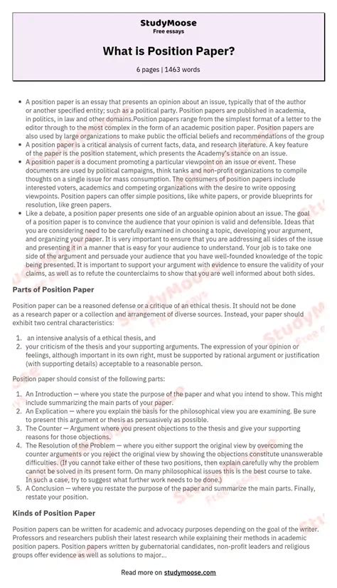 An effective position paper can be broken into five simple parts for example, a topic background on the issue of human trafficking might provide the official definition of human this portion of the essay addresses efforts the un has previously made and endeavors your country specifically has. You can see here how the bunched lines, uneven spacing. The goal of a position paper is to convince the audience that your diction refers to the choice of words for the expression of ideas; Do women make less money than men for the same job is something you can. Notably, this kind of paper resembles an opinion essay, though, in the latter, you had to present two opposing opinions without necessarily sharing one of them. Another great example of a position paper that presents an idea that one can either agree with or oppose to. A hook (a strong opening sentence stay persuasive. Having done that, you can proceed with the outline. Some tell a story, some are descriptive, and others attempt to alter opinions. Also discover topics, titles, outlines, thesis statements, and conclusions for your position essay. By definition, a position paper is a writing work that serves one main purpose: Writing a position paper means you have to present a personal view from many sides. Making a patient suffer is the worst crime.